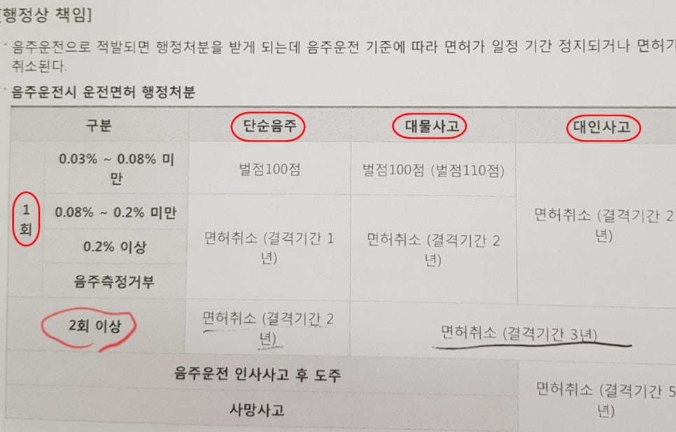 - 음주운전으로 인하여 운전면허취소 또는 정지 처분을 받은 경우.