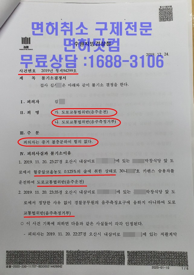 - 음주단속 시 위법.부당한 측정으로 면허가 취소된 경우.