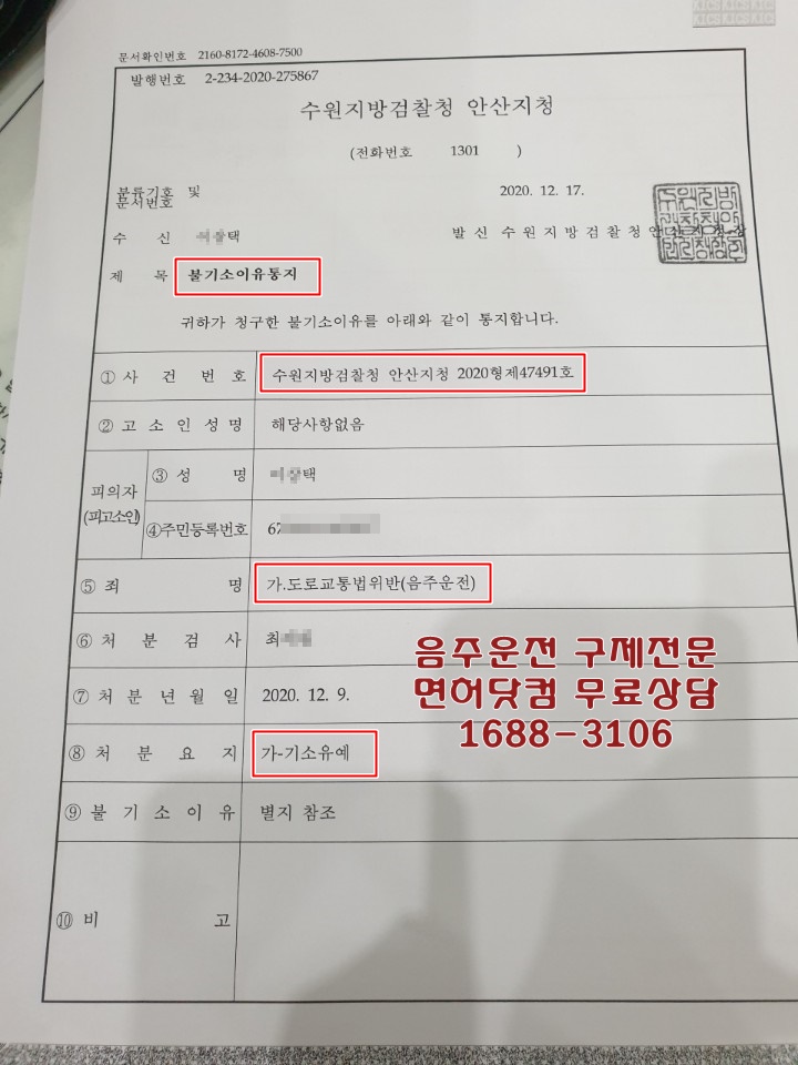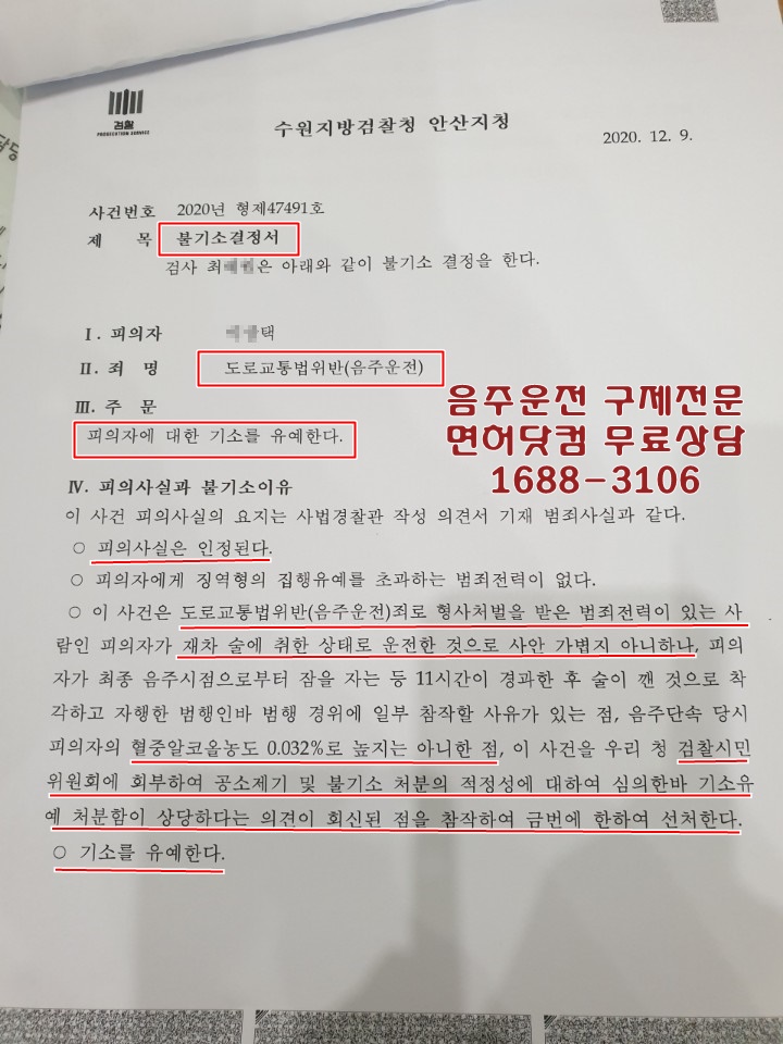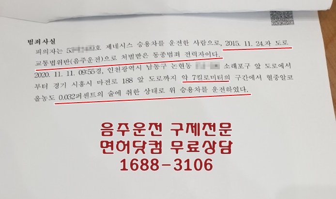 처음 적발당시 음주수치가 0.032%라서 정지처분인줄 알았는데