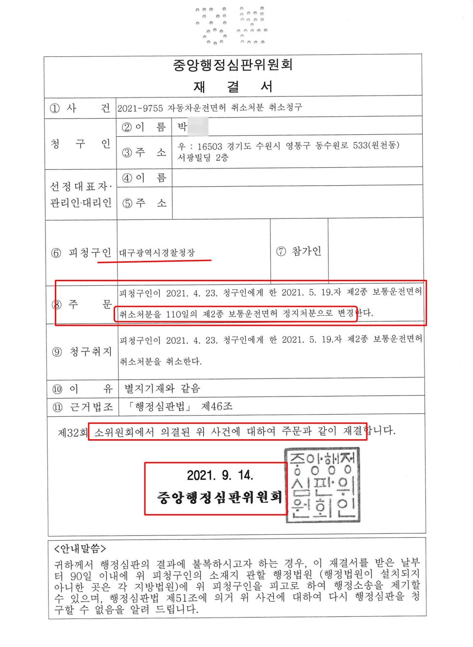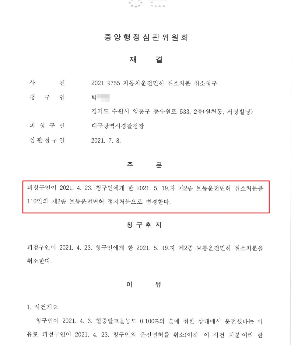 2021년 7월 행정심판을 청구하게 되었습니다.