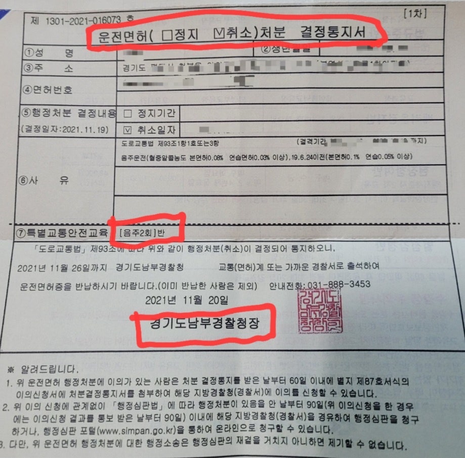 2번만 걸려도 면허취소처분과 함께 결격기간도 2년이라는