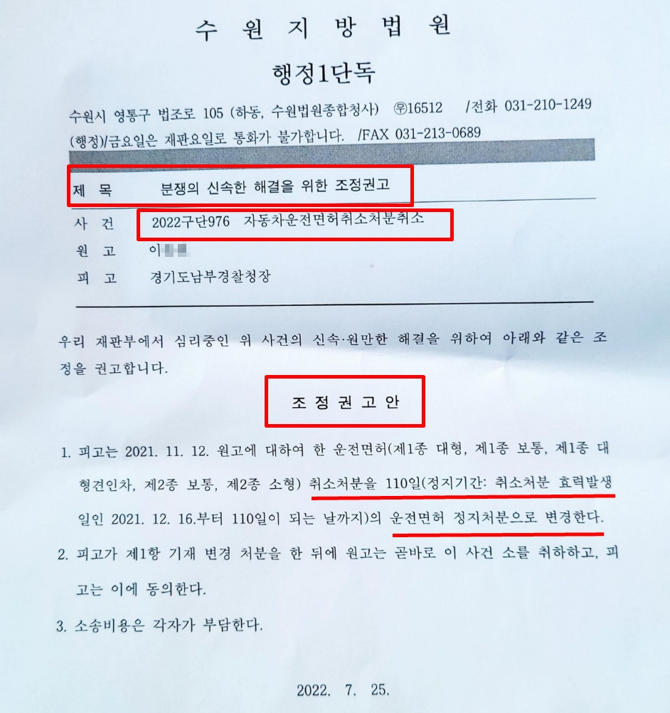 적발 당시 의뢰인은 면허정지 100일 처분에 해당하는 수치라는
