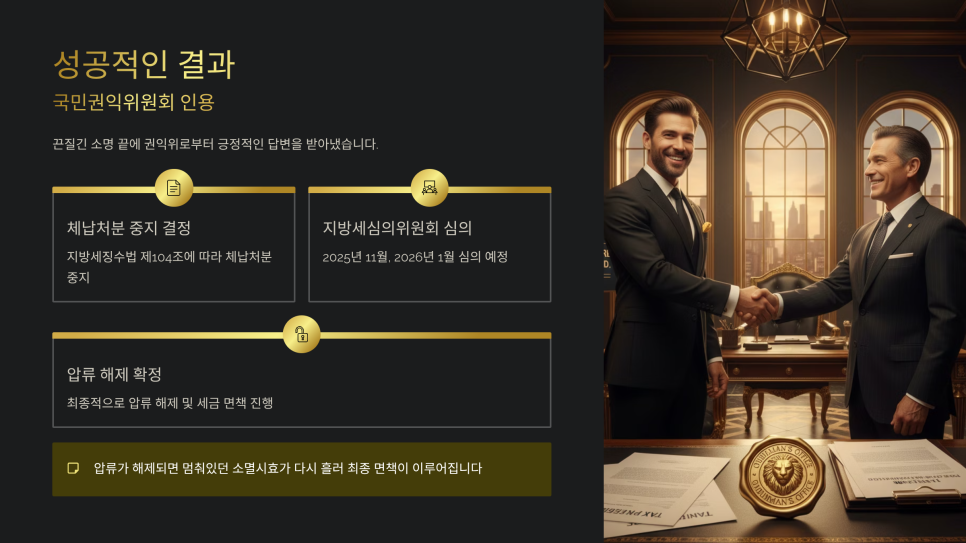 체납 면책의 핵심은 **"어떻게 법리적으로 이 끈질긴 압류를 해제하느냐"**에 달려 있습니다.