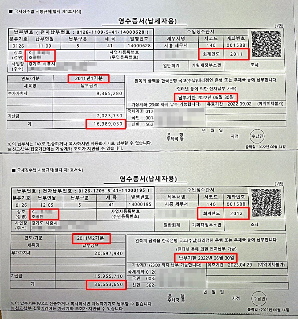 최근까지도 연체된 국세에 대하여 납부고지서를 받았던 의뢰인 조모씨의 경우